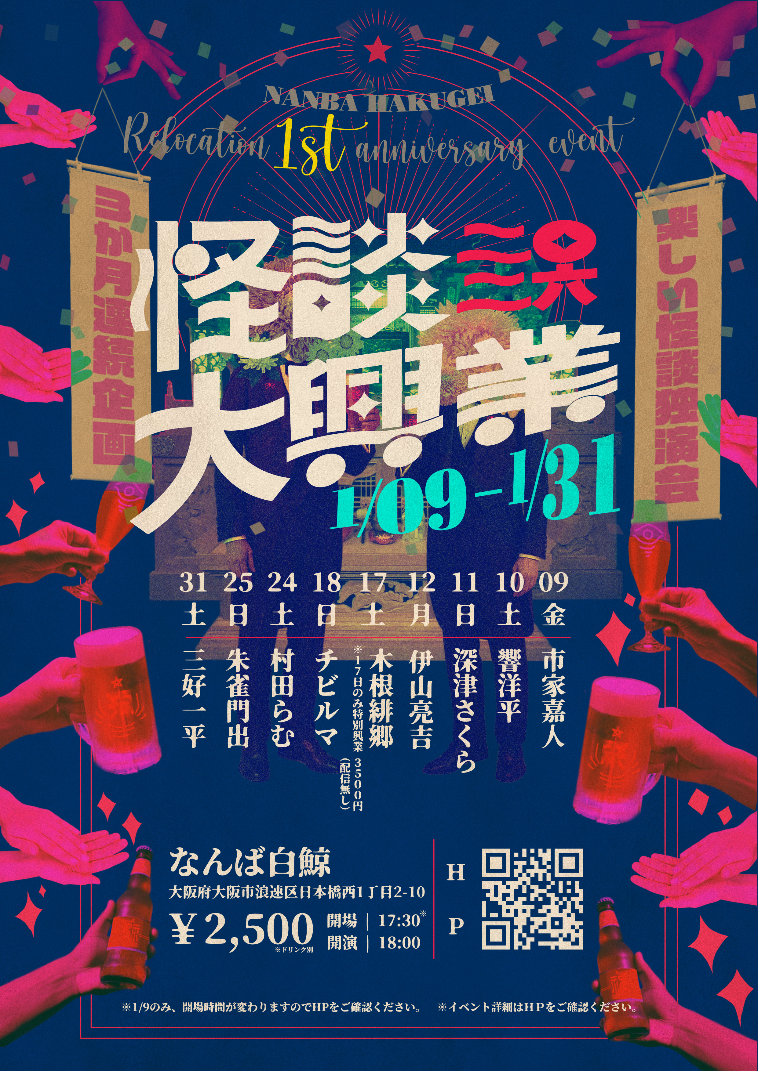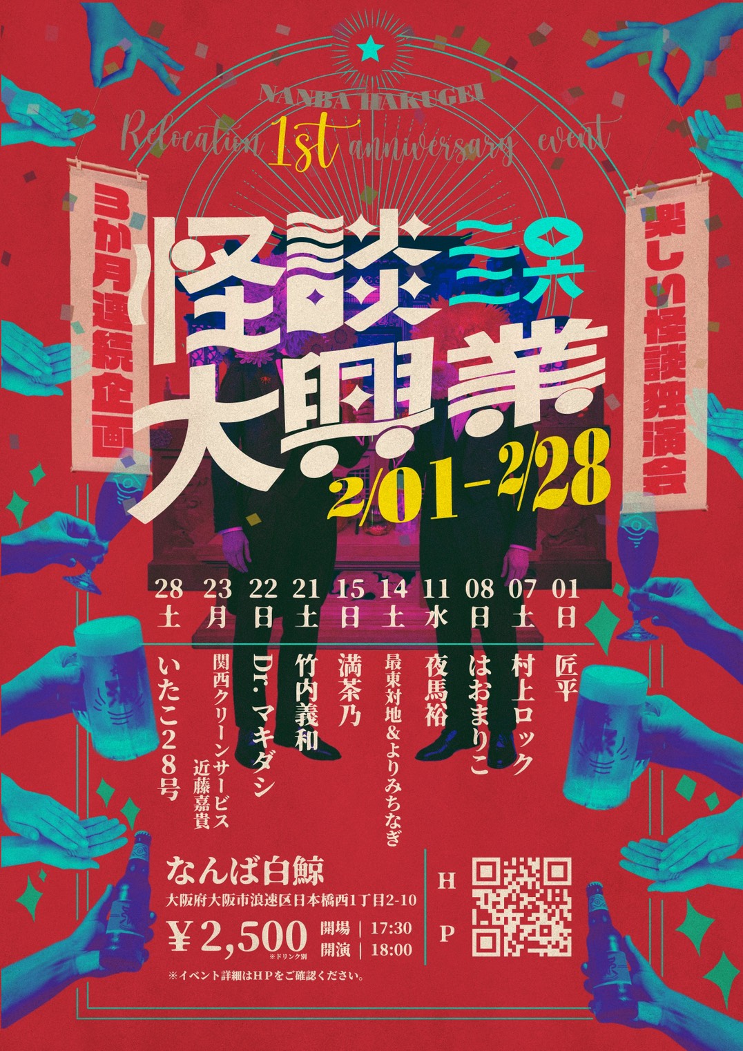 なんば白鯨移転1周年を記念して、ロングランの怪談イベント「怪談大興業二〇二六」を開催します!
